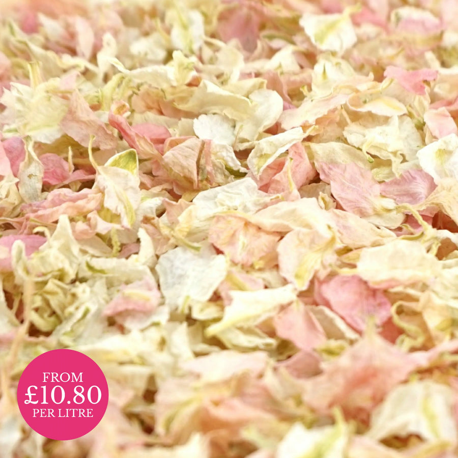 Whether you fancy our freeze-dried rose petals in dreamy shades like "Blushing Bride" and "Pop the Champagne," or prefer our UK-grown larkspur in rich colours like "Raspberry Vanilla" and "Very Berry," we've got you covered. With whites, ivories, hydrangeas, and custom mixes too, finding your perfect confetti match is easy.