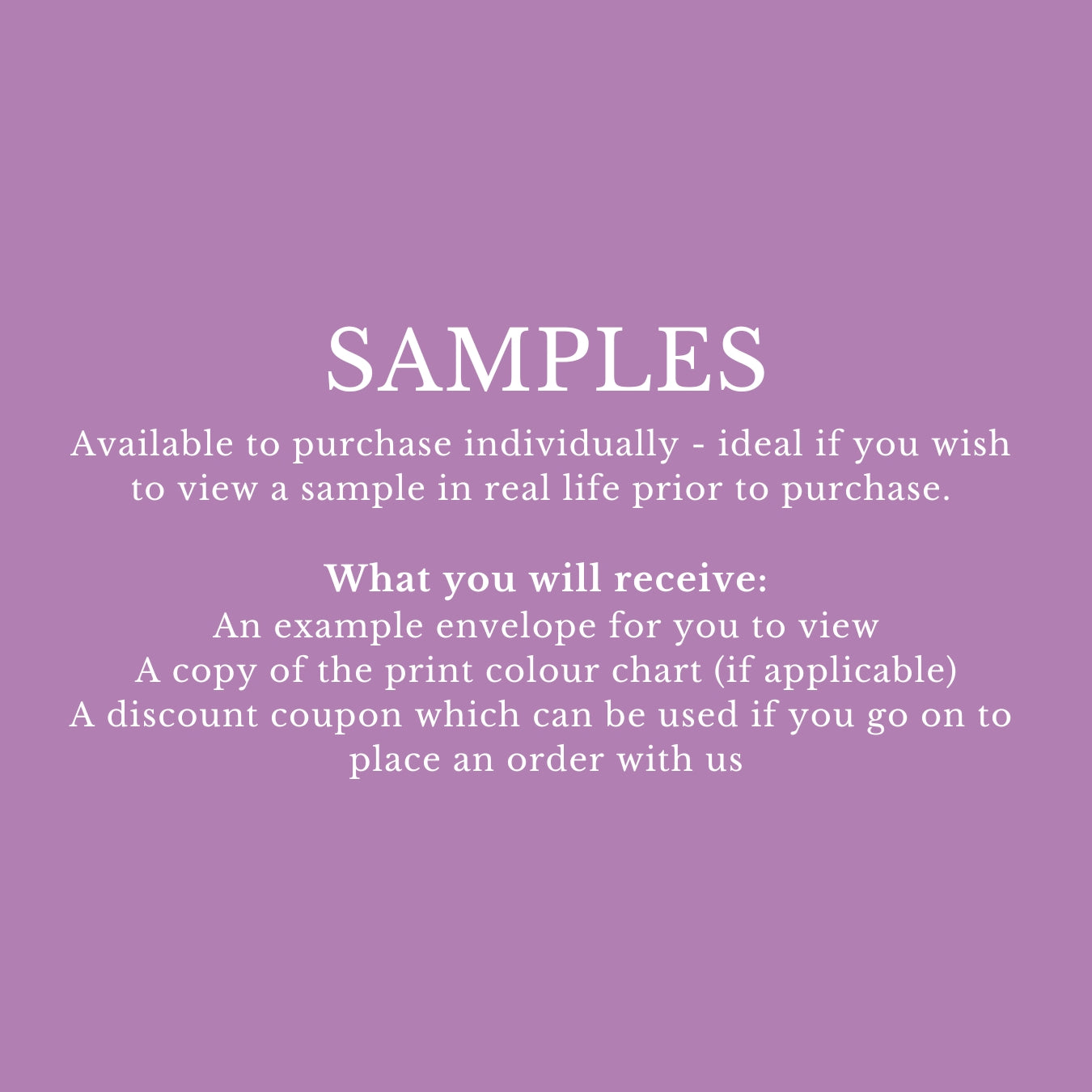 If you purchase a sample you will receive 1 envelope containing the confetti colour of your choice, sealed with an example sticker.