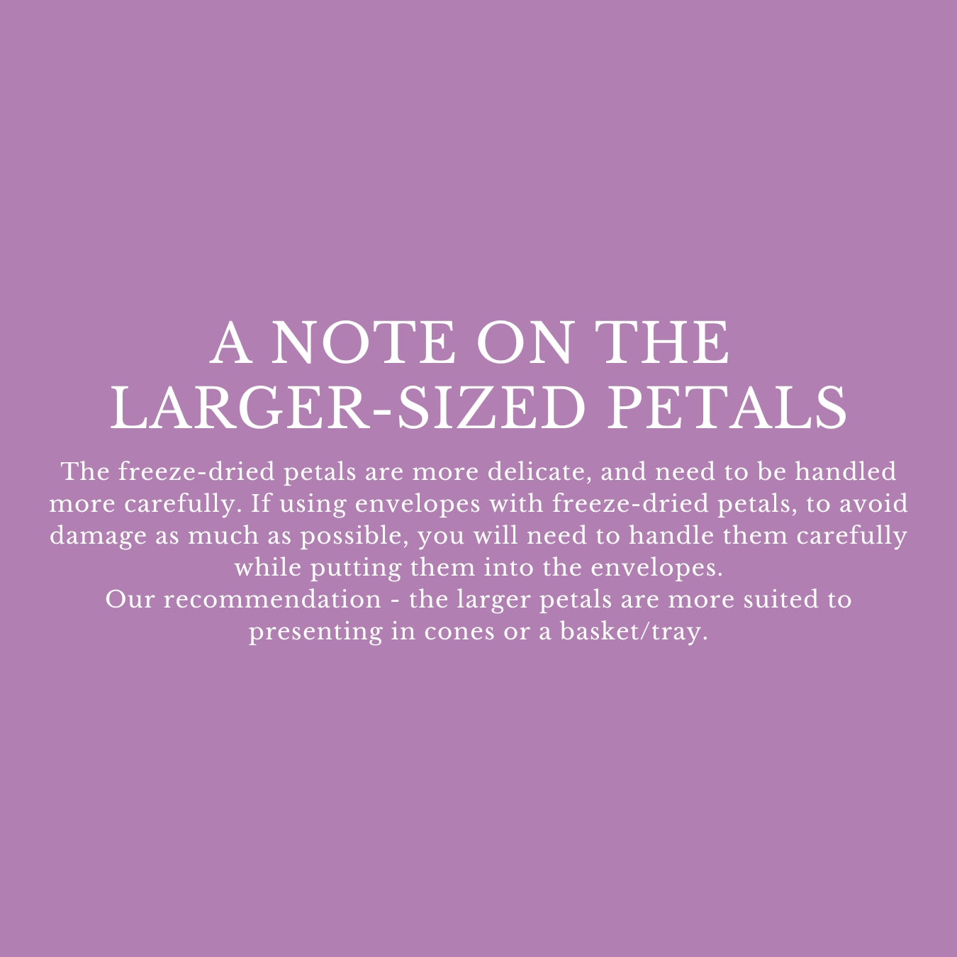 Please note: the measuring cup is only suitable for measuring smaller-sized petals (such as larkspur). It is not suitable for measuring larger-sized petals (such as the preserved or freeze-dried petals).