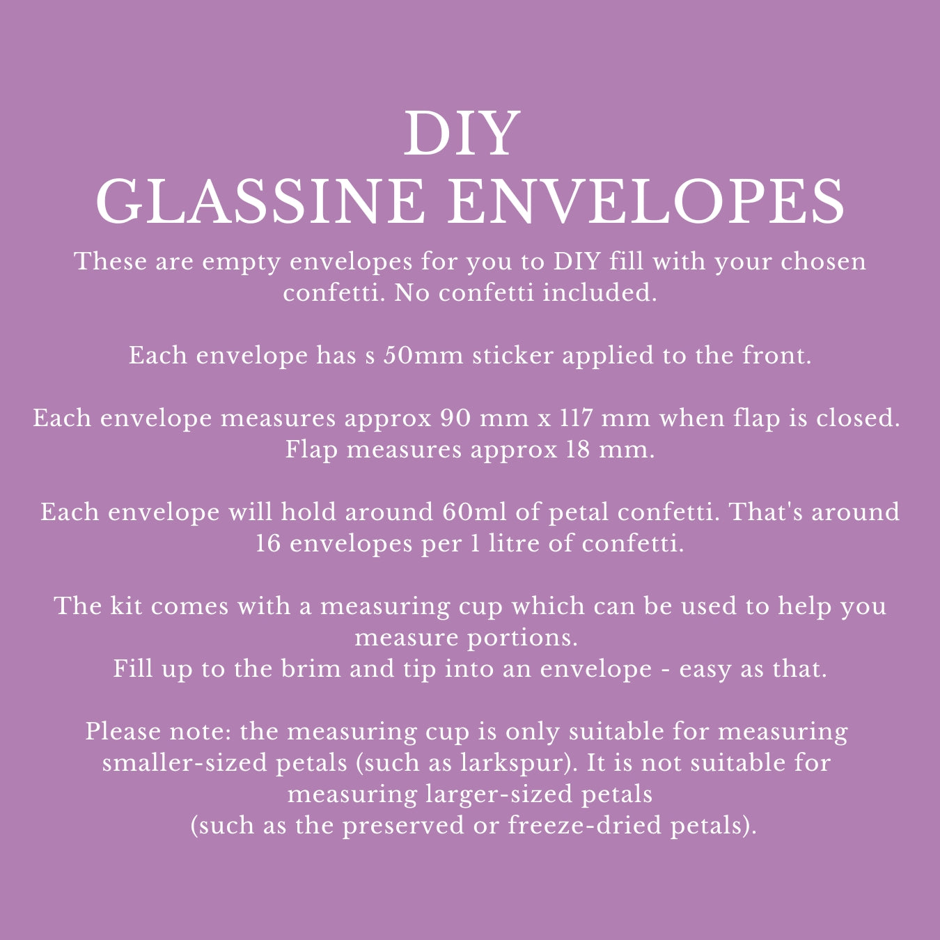 PLEASE NOTE: These are empty envelopes for you to fill however you choose. No confetti included.