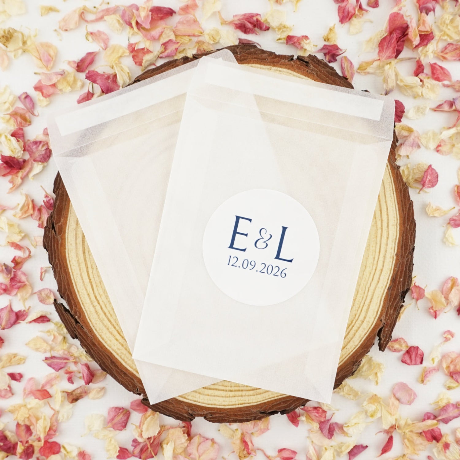 Create your own confetti bags with our glassine envelopes with stickers.