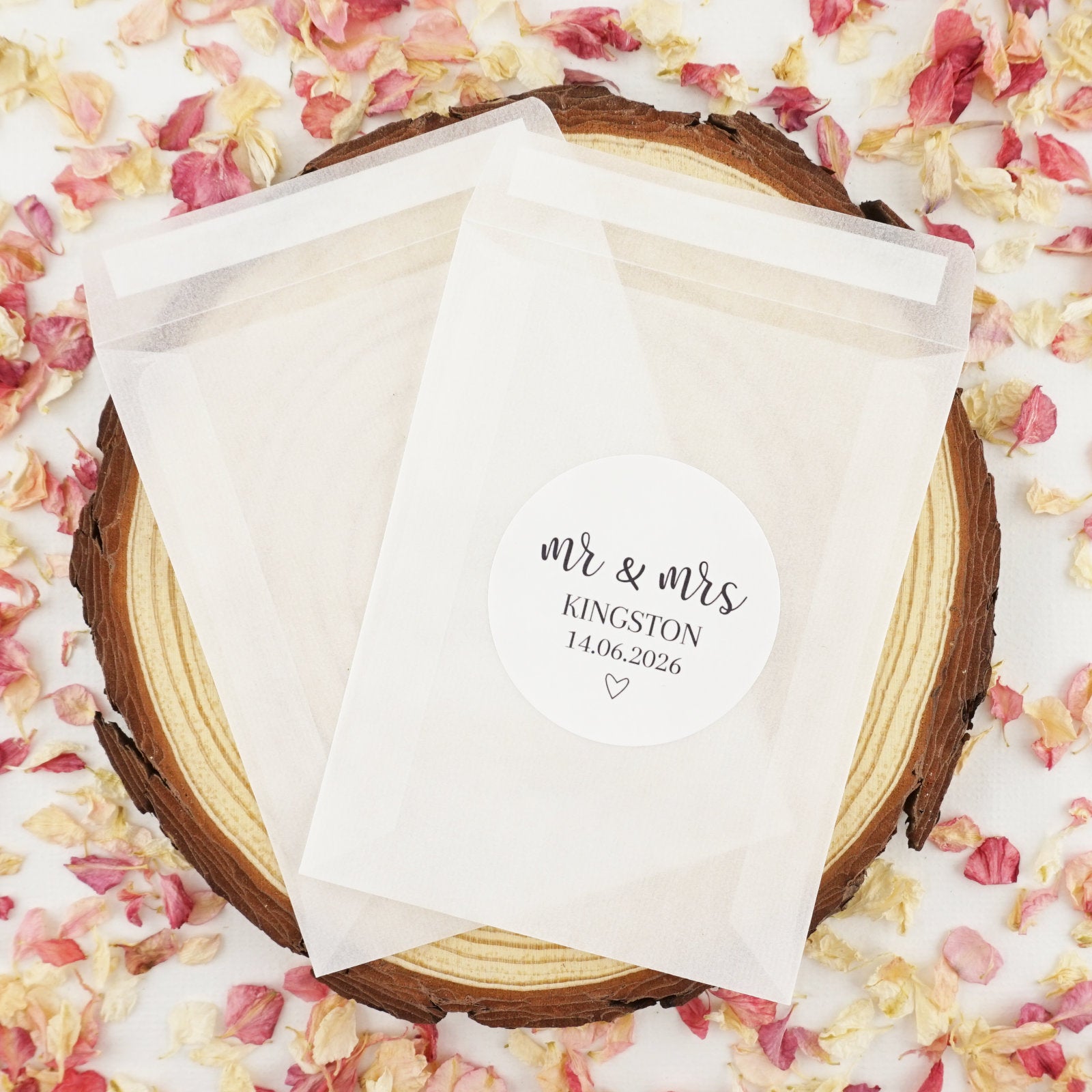 Personalised Glassine Envelopes for Confetti Bags Romantic Mr & Mrs DIY (Empty)