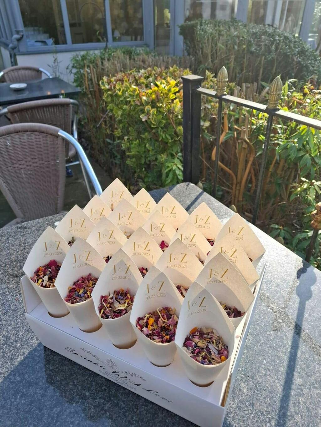 Our Confetti & Cone Bundles enable you to purchase your confetti cones along with the corresponding volume of confetti petals and SAVE! You can read full details on the Confetti & Cone Bundles via this link.